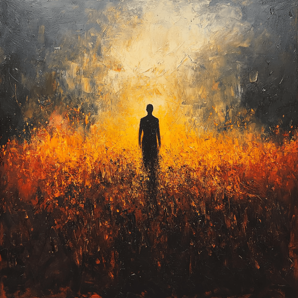 There are moments in life when language abandons us. Or rather, when we abandon it. When we live inside the fire—grief-stricken, fevered with love, wretched with loss—words dissolve. We do not describe pain while we are drowning in it; we do not narrate joy when it swallows us whole. There is, in these moments, a silence that is not chosen but imposed, a silence that arises because the self is too near to what it suffers or celebrates. This is not the silence of peace, but the silence of proximity.
